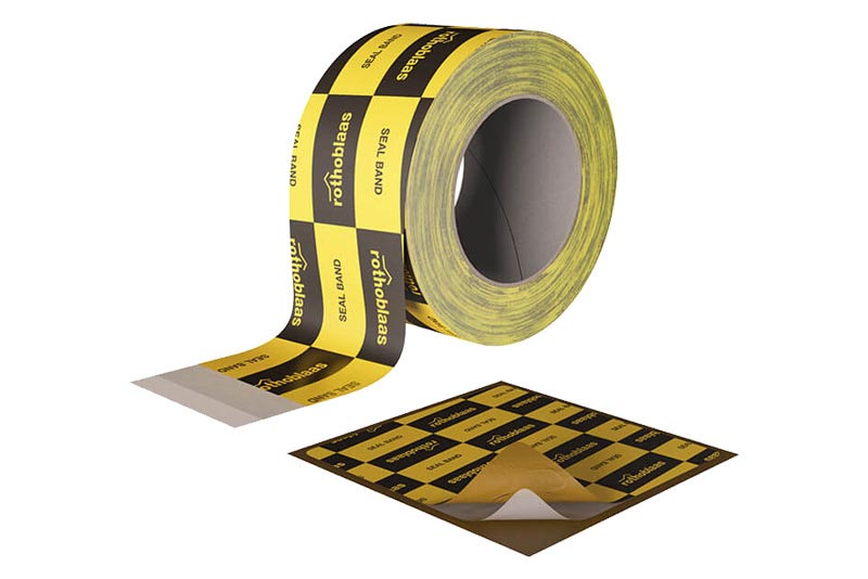 Cinta adhesiva de alta resistencia para el sellado de uniones entre láminas, marcos de ventanas, juntas y pasos de instalaciones. Imprescindible para garantizar la continuidad de la barrera de aire y vapor.